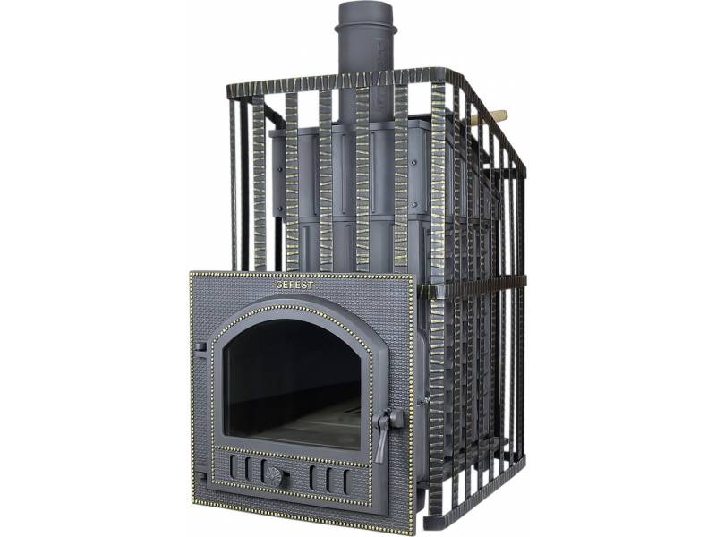 Дверца печи Gefest оснащена жаростойким стеклом фирмы Shott Robax (Германия) и керамическим жаростойким уплотнителем.