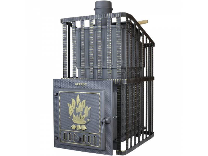 Чугунная Банная Печь «Гефест Ураган 3К» (ПБ-02С-3К) с чугунной дверцей и сеткой для камней