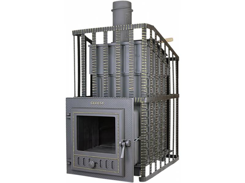 Чугунная Банная Печь «Гефест Ураган 3К» (ПБ-03МС-3К) со стеклом и сеткой для камней