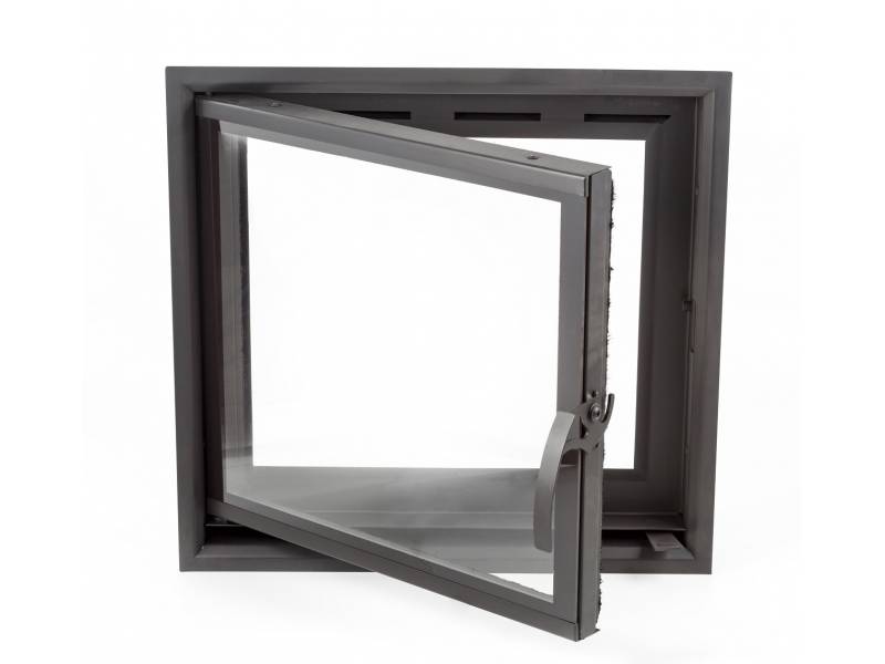 Цена указана для дверц минимальных размеров. Надежная сварная конструкция (из высококачественных гнутых профилей), не допускающая коробления от нагревания. Надежная апробированная конструкция завеса и ее запирания. Износостойкое уплотнение, гарантирующее длительность эксплуатации без замены. Точная регулировка подачи воздуха в топку, обеспечивающая оптимальное горение. Система «чистое стекло» - подача подогреваемого воздуха сверху в топку в виде воздушной завесы, предохраняющее стекло от копоти. Наличие в двери обналичивающей планки. Удобство при монтаже (скрывает щель между дверью и кладкой печи). Современный и оригинальный дизайн. По желанию заказчика, в дверь для камина возможна вставка элементов из зеркальной нержавеющей стали. Дверцы изготавливаются по индивидуальным размерам заказчика с системой регулировки подачи воздуха в топку камина и без нее. Дверцы окрашены термостойкой краской фирмы "BARPIMO" (Италия). В качестве стекла используется стеклокерамика "ROBAX" (Германия), выдерживающая температуру до 750 градусов Цельсия.