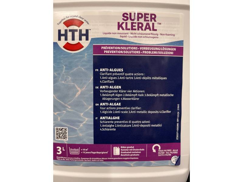 Благодаря своим уникальным свойствам, SUPER KLERAL HTH 3 л обеспечивает эффективное удаление загрязнений и бактерий, поддерживая воду в бассейне в идеальном состоянии.