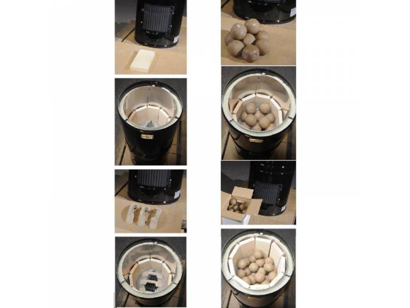 В комплект поставки печи входят исключительно износостойкие керамические камни или камни оливин. Благодаря этому значительно сокращается время, необходимое для прогрева бани. Овальная форма керамических камней обеспечивает свободное прохождение между ними горячего воздуха и улучшает тягу печи. Камни характеризуются исключительной термостойкостью, что продлевает срок их службы.