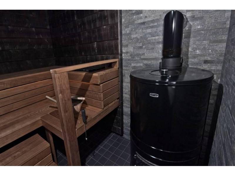 У кожуха имеется слой теплоизоляционного материала, защищенного листом из нержавеющей стали. Топочная камера выложена из элементов, изготовленных из огнеупорного материала. Стенки камеры для камней выложены огнеупорным кирпичом. Дверца каменки, колосниковая решетка и внутренняя крышка выполнены из чугуна.