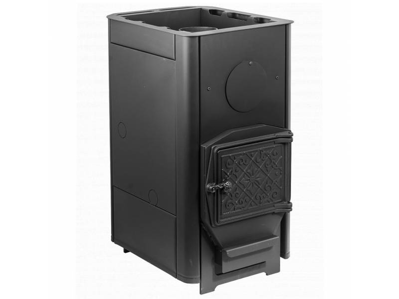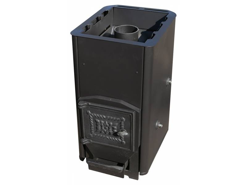 Топка и зольный ящик изготовлены из стального проката, усиленные в участках подверженных наибольшей деформации гибкой. Рядом с отсеком для закладки камня находится патрубок для подключения дымохода.