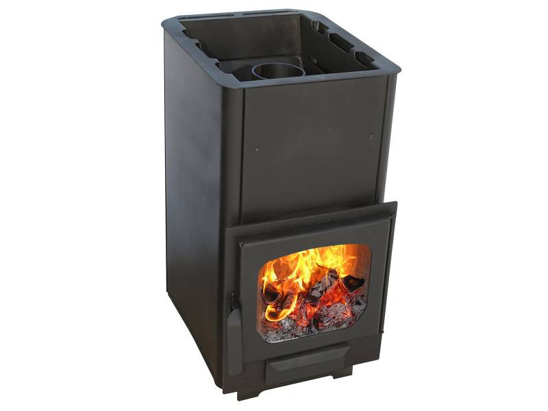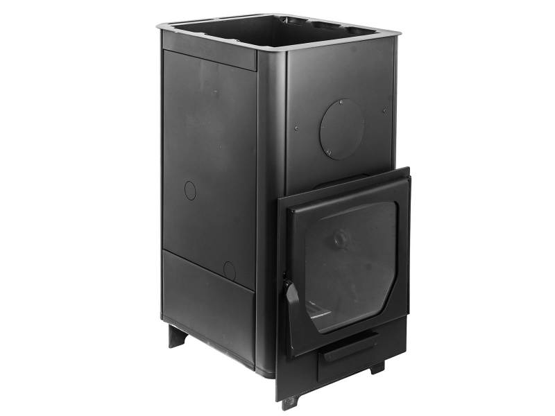 Топка и зольный ящик изготовлены из стального проката, усиленные в участках подверженных наибольшей деформации гибкой. Рядом с отсеком для закладки камня находится патрубок для подключения дымохода.