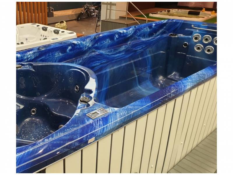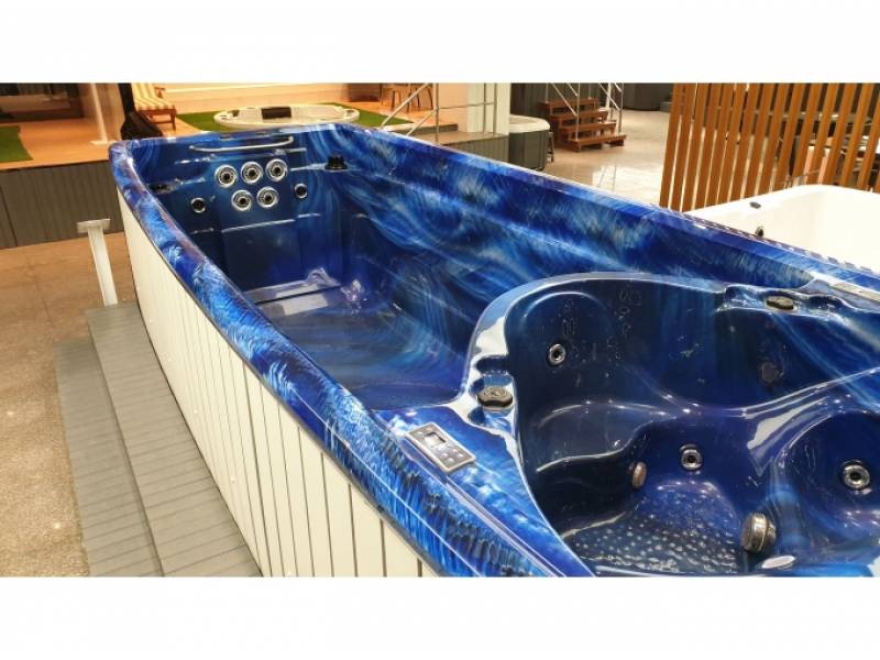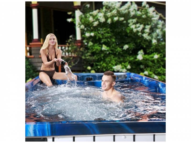 Эксклюзивный дизайн с двумя персональными гидромассажными креслами и удобными ступеням для спуска в зону для плавания.